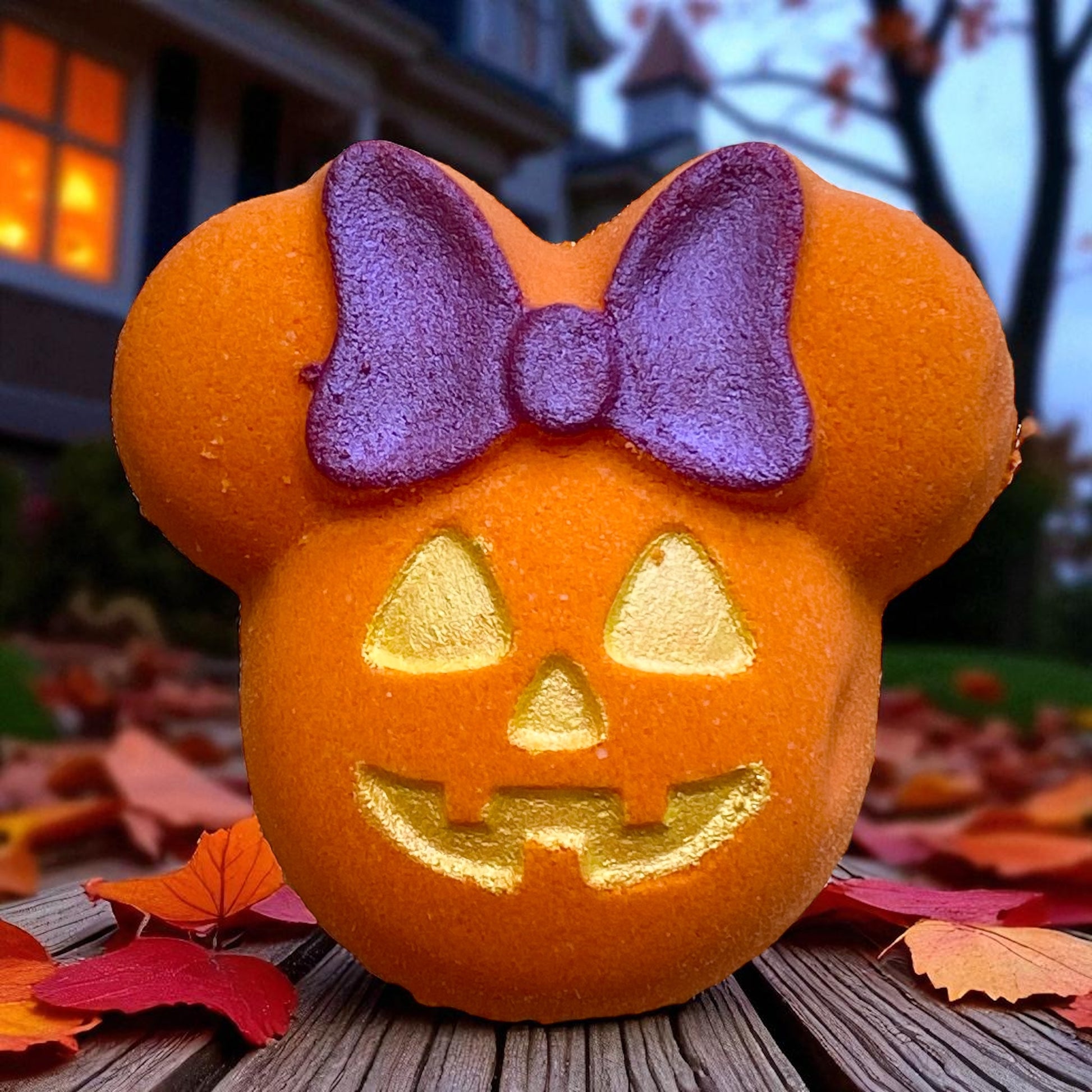 Halloween Minnie bath bomb. Hand painted shell with hidden color embeds and a Disney shoe charm. Sweet blackberry jam. 5.2 oz
