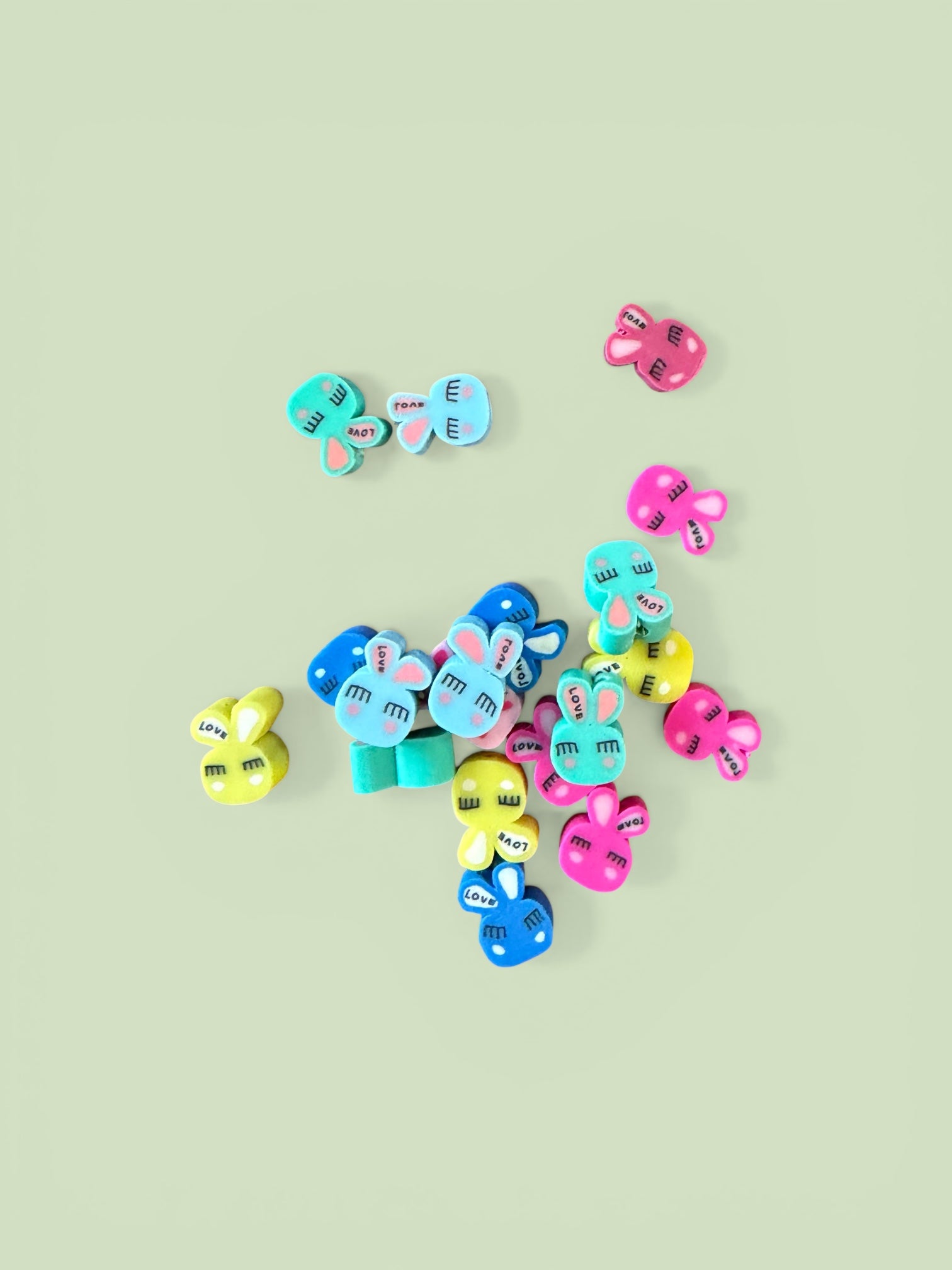 Tea cup bunny bath bomb. Hand painted shell with hidden color embeds and two bunny charms. Pineapple, banana, and tropical fruits blended with a hint of rose petals. 3.4 oz